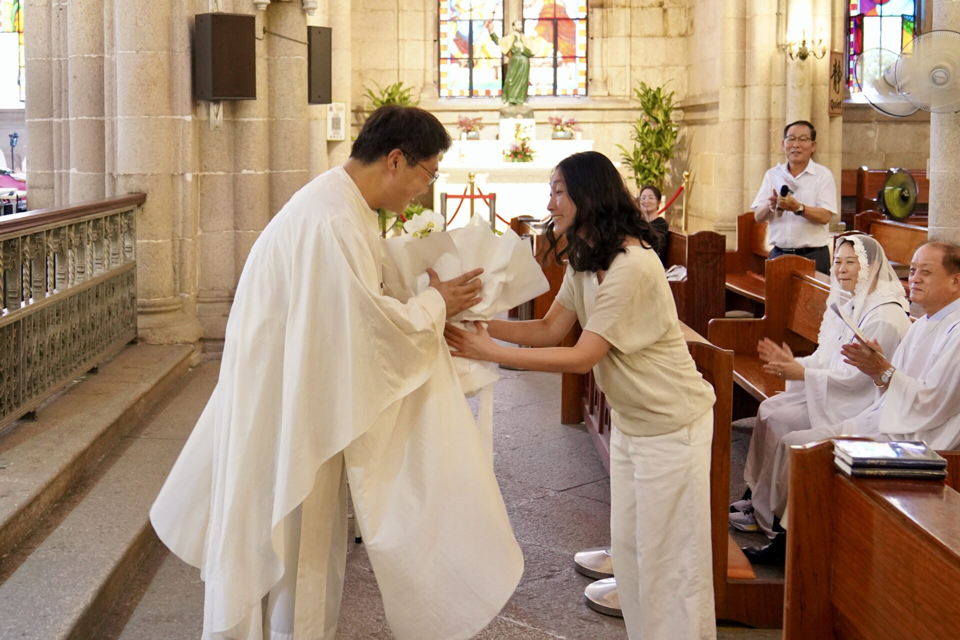 류주화 시몬 신부님 사제 수품 18주년 축하 성가대 특송과 꽃다발 증정